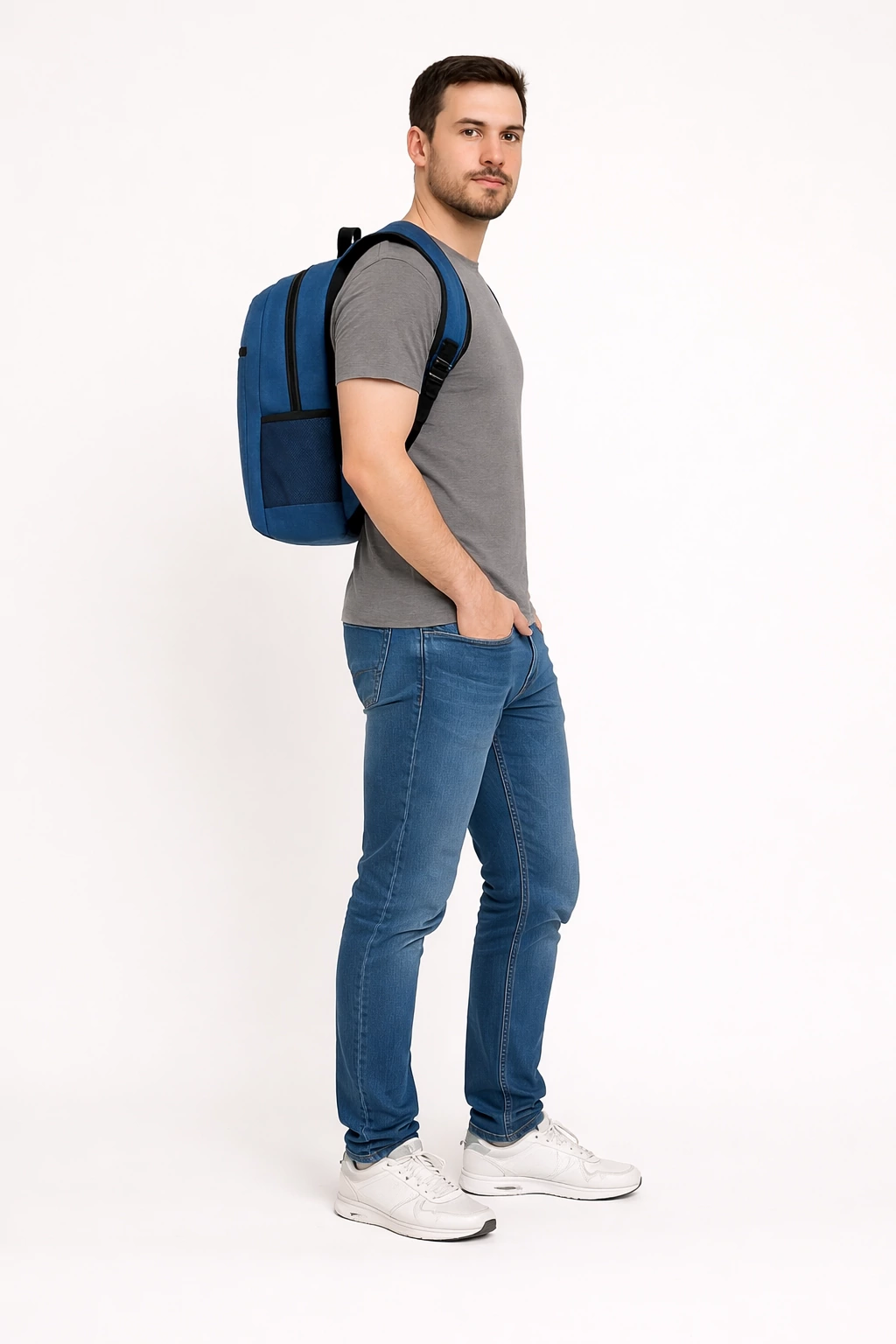 - Deux poches latérales pour une bouteille ou un parapluie