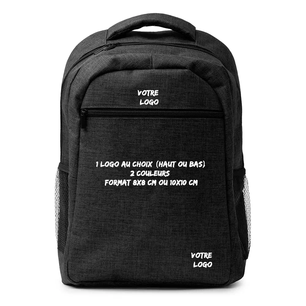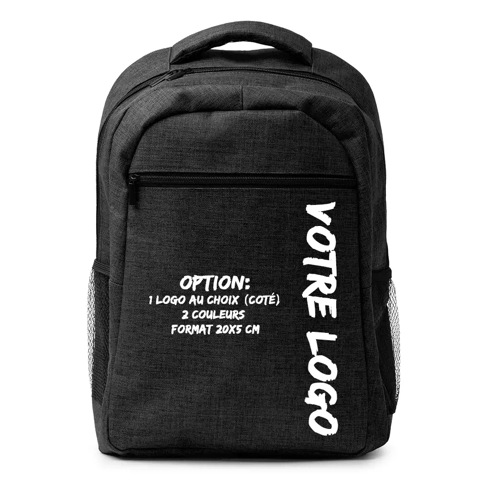 Le sac à dos Megan est fabriqué en polyester recyclé RPET 600D. Solide, sobre, avec une finition marbrée qui se distingue sans chercher à en faire trop. Sa capacité de 20 litres et sa poche ordinateur 15 pouces en font un choix cohérent pour une dotation d’entreprise, un cadeau CSE ou un kit d’accueil. Compatible flocage et DTF, il prend votre logo sans que ça se voie de loin — juste assez pour marquer les esprits.