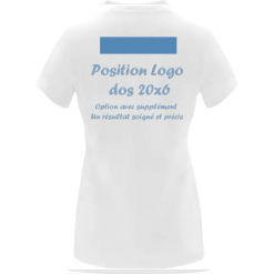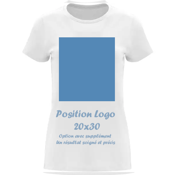 La surface unie du jersey coton offre un rendu propre après marquage. Coupe structurée, tissu stable : le visuel reste net dans le temps. Pour une association, un club, une équipe événementielle ou une entreprise qui veut donner une cohérence à ses équipes féminines, c’est un modèle efficace sans être complexe. Commande à partir de 5 pièces, avec bon à tirer avant lancement.